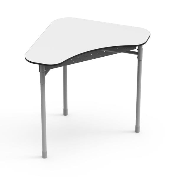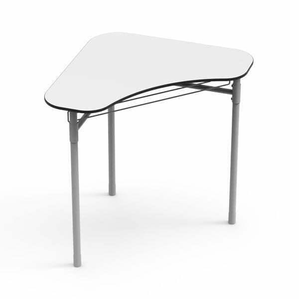 Estrutura de 4 pernas aparafusadas ao tampo, desmontáveis para fácil transporte, em tubo de aço Ø30×1,5 mm com pintura epoxy. Travamento desmontável em tubo de Ø22×1,5 mm, com fixação através de encaixe e aparafusado às quatro pernas para maior estabilidade. Tampo em painel compacto melamínico de 13 mm de espessura de formato curvo da NAUTILUS com 838x504mm. Terminais com Ø30 e 50 mm de altura revestem o exterior das pernas para proteção contra elementos corrosivos. Opção fixa ou com regulação em altura. Disponível com ou sem rodízios;
